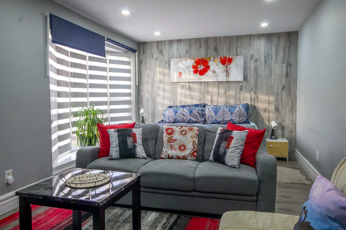 Relax in a peaceful, quiet neighbourhood. Conveniently located nearby Pearson Airport. Enter the core of Toronto via GO train - a 5 minute drive away to Malton Station. Walking distance to a shopping centre with restaurants and grocery store. Enjoy staying in a newly renovated private space for you., with private entrance to the apartment, a private bedroom-living room, full kitchen, and full bathroom.