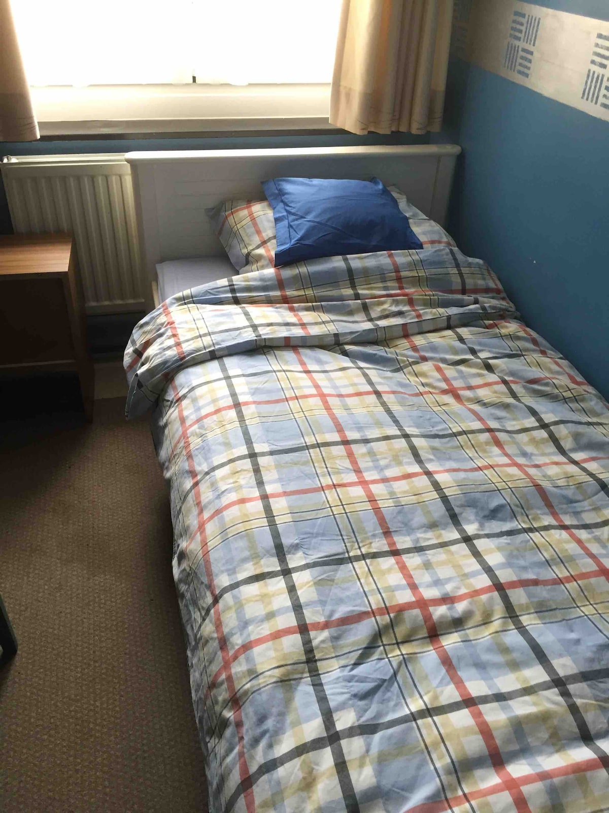 Welkom! Je komt binnen via een eigen ingang. Gelijkvloers bevindt zich de badkamer. De trap naar boven brengt u naar de studio, met kleine keuken. Het laatste deel van deze gang wordt in beperkte mate ook door de eigenaar gebruikt. Er is parkeerplaats voor auto's, overdekte staanplaats voor moto's/fietsen. Er is een grote tuin. Ook kinderen kunnen zich helemaal uitleven in onze mooie boomhut met schuifaf, schommel,... Er is ook een overdekt terras met loungeset waar je tot rust kan komen.