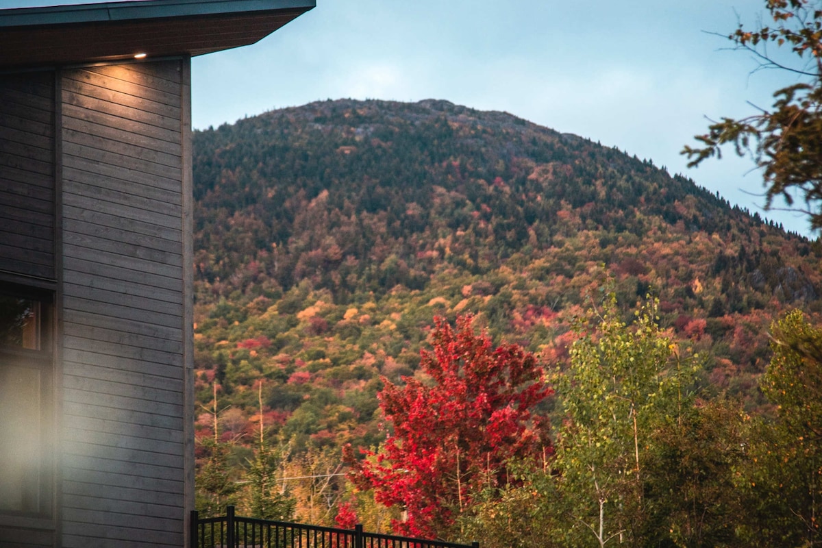 Cosy timeless chalet conceptualized by the architects of _naturehumaine. Nestled into the cliffside at an altitude of 490 meters (1600 feet), its unique design is distinguished by boldness and originality and fits with harmony in its environment. Surrounded by forest, the cottage offers breathtaking views of Mount Glen and the surrounding nature largely protected by the Appalachian Corridor. The perfect silent place to relax and unwind. Photo: Adrien Williams / S.A. CITQ #302449