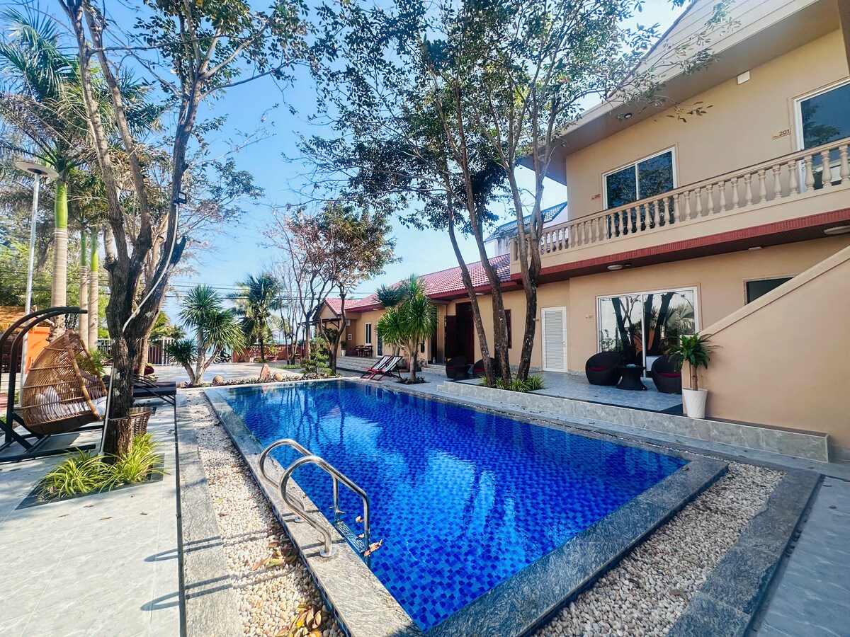 Got a large group of family members who want to build bonds together in a cozy beachfront home? Look no further. We're tucked away in a quiet spot along the beautiful coast of Phan Thiet. This is a large private villa, surrounded with the sound of the waves and swaying palm trees creating a laid-back vibe that'll help you enjoy your family time. Designed with 10 comfy bedrooms, 9 bathrooms, great pool and large coutyard, you will have everything you need to spend great holidays or events.