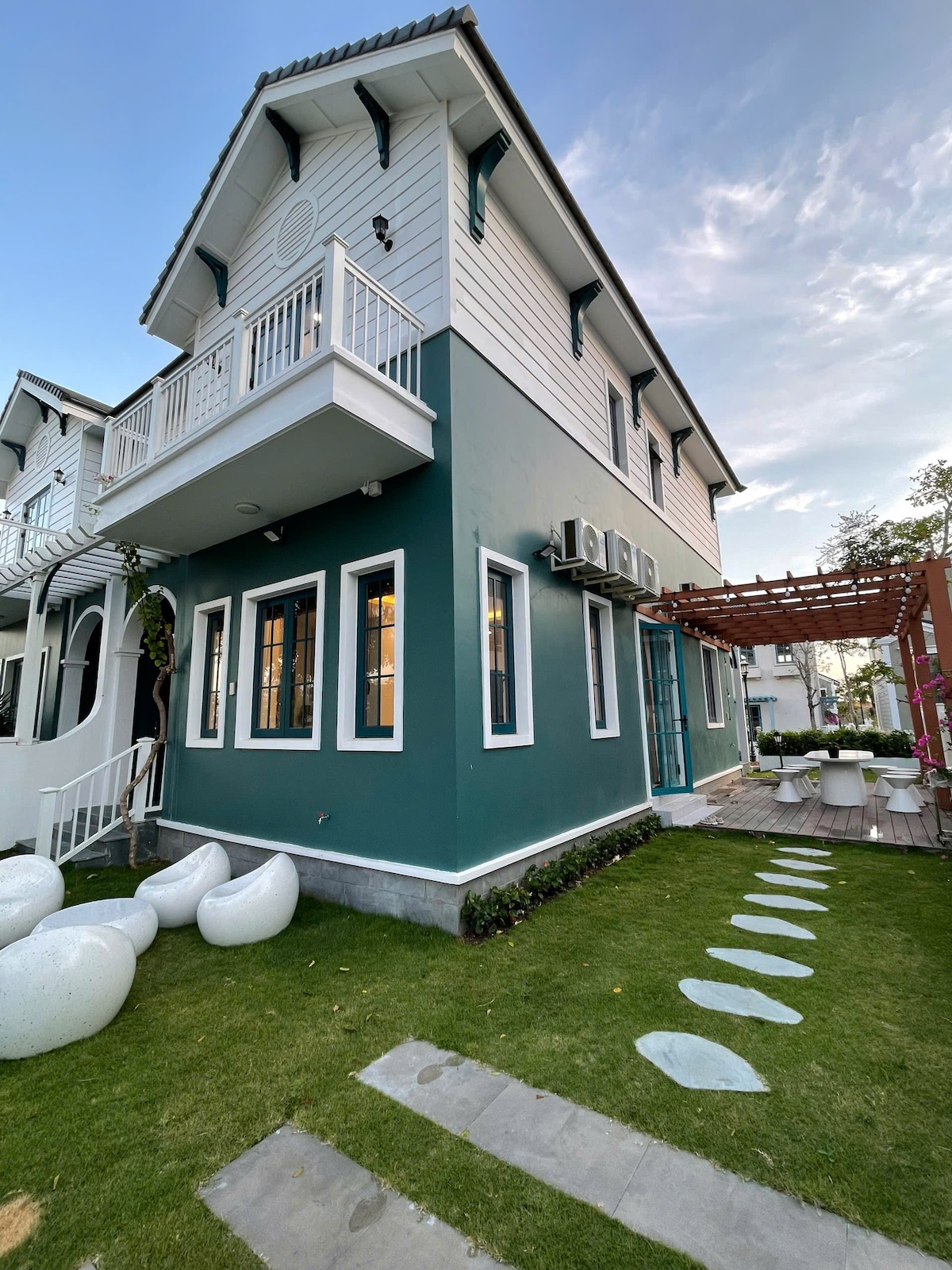 Trải nghiệm kỳ nghỉ tuyệt vời cùng gia đình và bạn bè tại căn biệt thự sang trọng, chỉ cách biển vài phút đi bộ. - 3 phòng ngủ rộng rãi, 3 nhà vệ sinh tiện nghi - Sức chứa thoải mái 10–15 khách - Thiết kế hiện đại, tinh tế, ngập tràn ánh sáng tự nhiên - Ban công và giàn hoa giấy rực rỡ, mang đến không gian thư giãn và sống ảo tuyệt đẹp. - Phòng khách lớn, bếp đầy đủ dụng cụ để bạn có thể tổ chức bữa tiệc gia đình hoặc BBQ cuối tuần - Sân vườn thoáng mát, hàng rào trắng lãng mạn riêng tư