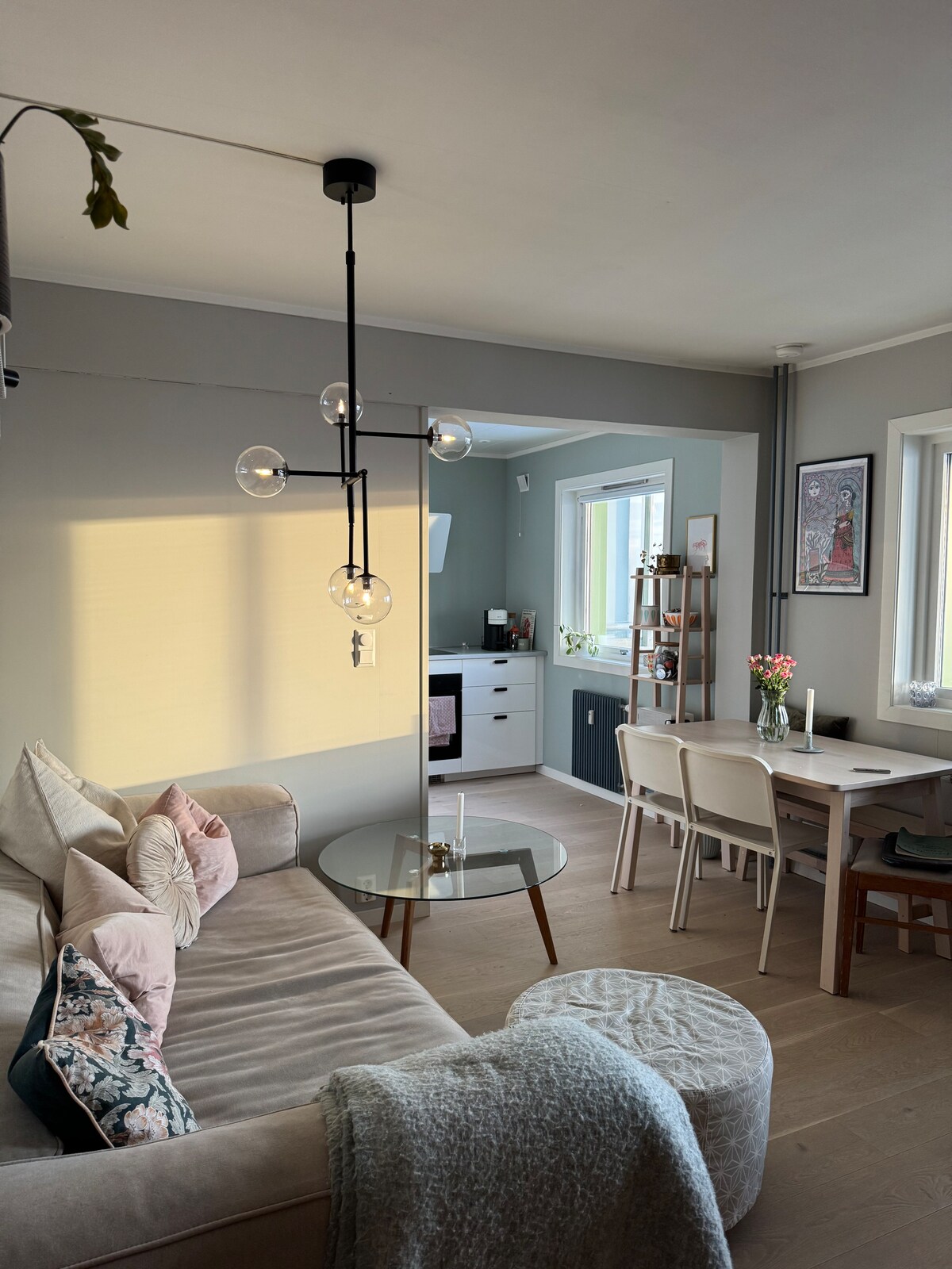 Lad batteriene på dette unike og rolige overnattingsstedet. Lys og koselig leilighet med ett soverom og moderne oppussing som kombinerer komfort og praktisk beliggenhet. Garasje og parkering er inkludert, og butikker, kjøpesenteret Maxi og CC Amfi ishall ligger alle i gangavstand. Leiligheten er ren, stilfull og møblert med tanke på trivsel, og gir en hjemmekoselig atmosfære for et komfortabelt og behagelig opphold.