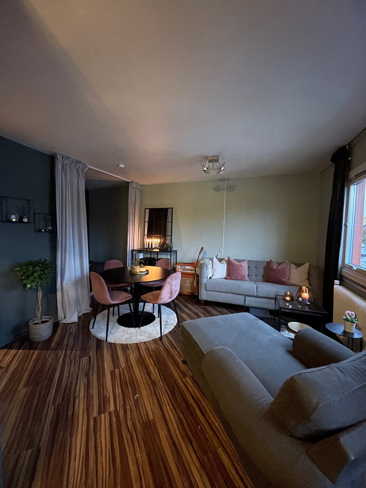 Koselig leilighet kun 700 meter fra Hamar togstasjon. Gratis parkering på stedet. Leiligheten inneholder alt man trenger for et behagelig opphold. Ligger fredelig til sentralt på Hamar, mellom togstasjonen og Vikingskipet. Leiligheten brukes jevnlig av meg, så standarden er høy og leiligheten er godt utstyrt. Utvask tar jeg ansvar for selv, da jeg på den måten kan garantere et rent og pent hjem til alle gjester. Utvask er inkludert i prisen.
