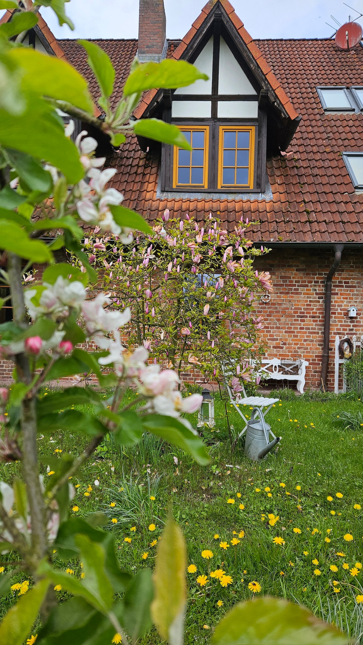 Holiday bliss awaits! ☀️ Imagine sunshine & space in our light-flooded apartment (almost 100 sqm!). Two comfy bedrooms, a huge, bright living-dining area, & full eat-in kitchen await. Your <b>private sun terrace</b> is the highlight! Picture afternoon sun & breathtaking sunsets. River Elbe & nature reserve: just a short walk. Think walks, fresh air, nature! Back home: table tennis & BBQ for fun evenings. Dream of a spacious, relaxing getaway near nature & Elbe? You've found it!