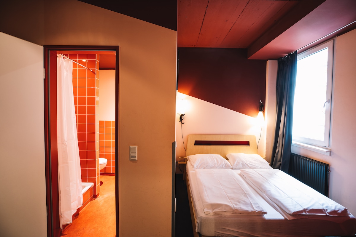Charming and compact, our Nest rooms are ideal for a short solo stay (unless you're keen to snuggle up). The 150-160cm-wide bed is extra-long and has luxurious oversize bedding. Just so you know, not all rooms have a wardrobe. Swing by the bar to catch an up-and-coming band, grab a drink with friends, or settle in for a sundowner on our spacious waterfront terrace. And when it's time to unwind, step behind the scenes to a haven of Lean Luxury calm: your room.