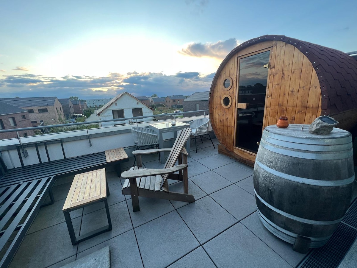 带桶式桑拿的美丽顶层公寓