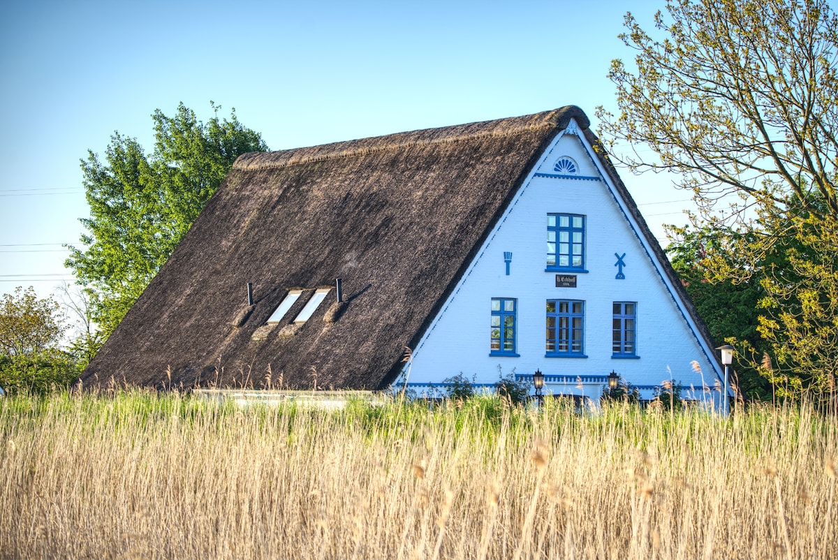 Gemütliches Haus am Deich, traumhafter Apfelgarten mit privater Sauna und Terrasse und direktem Zugang zum Deich, eigene Gartenbank auf dem Deich mit Blick über die Elbe und Strand direkt vor der Haustür! Ruhe, Entspannung und Natur pur garantieren für ein erholsames Urlaubserlebnis. An nicht so schönen Tagen sorgt der Kaminofen für Gemütlichkeit. Die Küche ist gut ausgerüstet und verfügt über zwei Induktionsplatten, einen kleinen Mini-Ofen, Kaffeemaschine, Toaster, und einen Smoothie-Maker