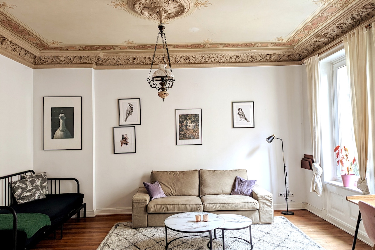 New opening 9/2020. Beautiful, sunny apartment in Waterloohus in quiet side street on the edge of the Schanzenviertel. Stay in an old merchant's villa built in 1885 and renovated in 2020 in a quiet residential street. Old building charm with modern hotel-like atmosphere, improved sound insulation and well-equipped kitchen. Within walking distance are numerous bars and restaurants of the popular trendy neighborhood Sternschanze. Child-friendly district with many playgrounds.