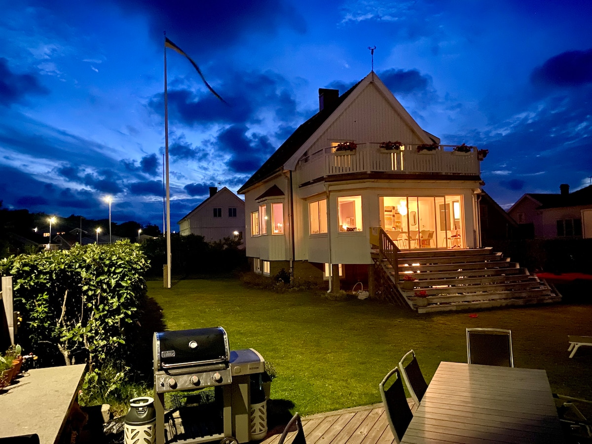 Comfortable holiday house for 6 pers, just outside Uddevalla, in the heart of the Swedish west coast. Perfect location with lots of privacy. Separate guesthouse available. Spacious terrace for sunbathing and evening bbq. You will love swimming in the fjord. Private beach and jetty (for the neighbourhood). Open fireplace and unlimited Wi-Fi. The house is also super cosy during the winter with an open fire place, warm bath in the hot tub and the sauna. A fantastic place to reflect over life.
