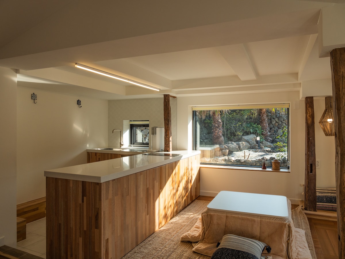 제주시 동쪽 조천읍 신촌리 바닷가 마을내에 위치하며, 100년이 넘는 제주구옥 옛날 기와지붕과 돌집을 그대로 유지하고 내부는 현대적으로 목수인 호스트가 직접 올 수리했습니다. 안쪽의 작은 마당에는 오래전부터 심어져있는 감나무와 숙소 내부에서 별도의 문으로 나가면 마당과 툇마루가 연결되어있습니다. 원룸 형태의 작은 공간이 아늑함을 줄것입니다. 숙소는 호스트가 거주하는 건물의 뒷편에 위치해 프라이빗하게 한팀만 이용할수 있습니다.