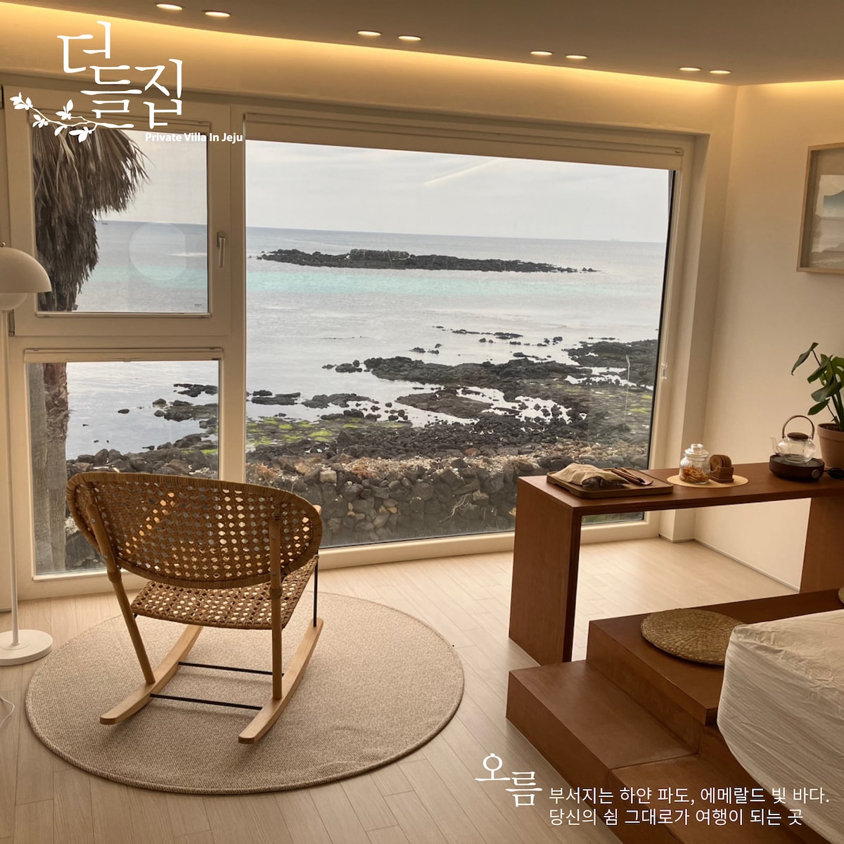 해안도로 앞, 올레길 근처에서 제주자연의 원시 풍경을 편안한 실내에서 한눈에 담으며 쉬어 가세요. 깨끗하고 편안한 실내에서 때로 거칠게 변화하는 바다의 풍경과 자연을 느낄 수 있어요. 실내와 야외 욕조의 따뜻한 물에 몸을 담그고 지친 몸을 힐링할 수도 있어요. 가까운 해수욕장을 찾아 해수욕, 산책을 즐길 수도 있어요. Located near the coastal road, this beautiful seashore offers opportunities for walking, riding, and driving. Relax indoors in a clean and comfortable environment, enjoying the scenery of the ocean, fields, wind, and the natural stone walls of Jeju Island. Enjoy a warm bath in the indoor and outdoor bathtubs.