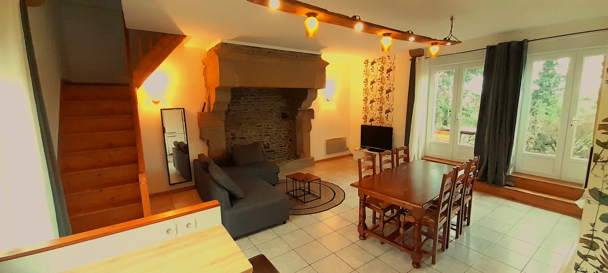 Ce logement paisible offre un séjour détente pour toute la famille. Le gîte dispose d'un espace de vie ouvert comprenant une cuisine équipée , une salle à manger spacieuse et un salon. Les jardins sont soignés, les arbres matures, le ruisseau et les nombreuses terrasses offrent des espaces tranquilles au coeur de la nature. Ce logement ne correspond pas au personnes à mobilité réduite, les chambres ainsi que la salle de bain sont à l'étage.