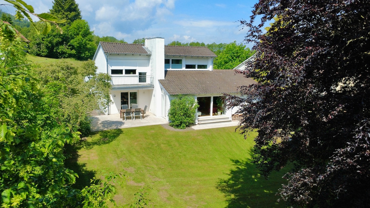 Vergiss deine Sorgen – Dieses ruhige, freistehende Haus lädt mit dem weiten Blick über Felder, Wälder und viel Grün zum Frühstücken auf der Terrasse ein. Perfekt für einen Urlaub oder ein Wochenende zu zweit. Für kalte Tage oder gemütliche Abende steht eine eigene Sauna, ein Whirlpool und ein mit Holz zu befeuernder Kachelofen zur Verfügung. Einkaufsmöglichkeiten sind fußläufig erreichbar, sowie viele schöne Wander- und Waldwege.