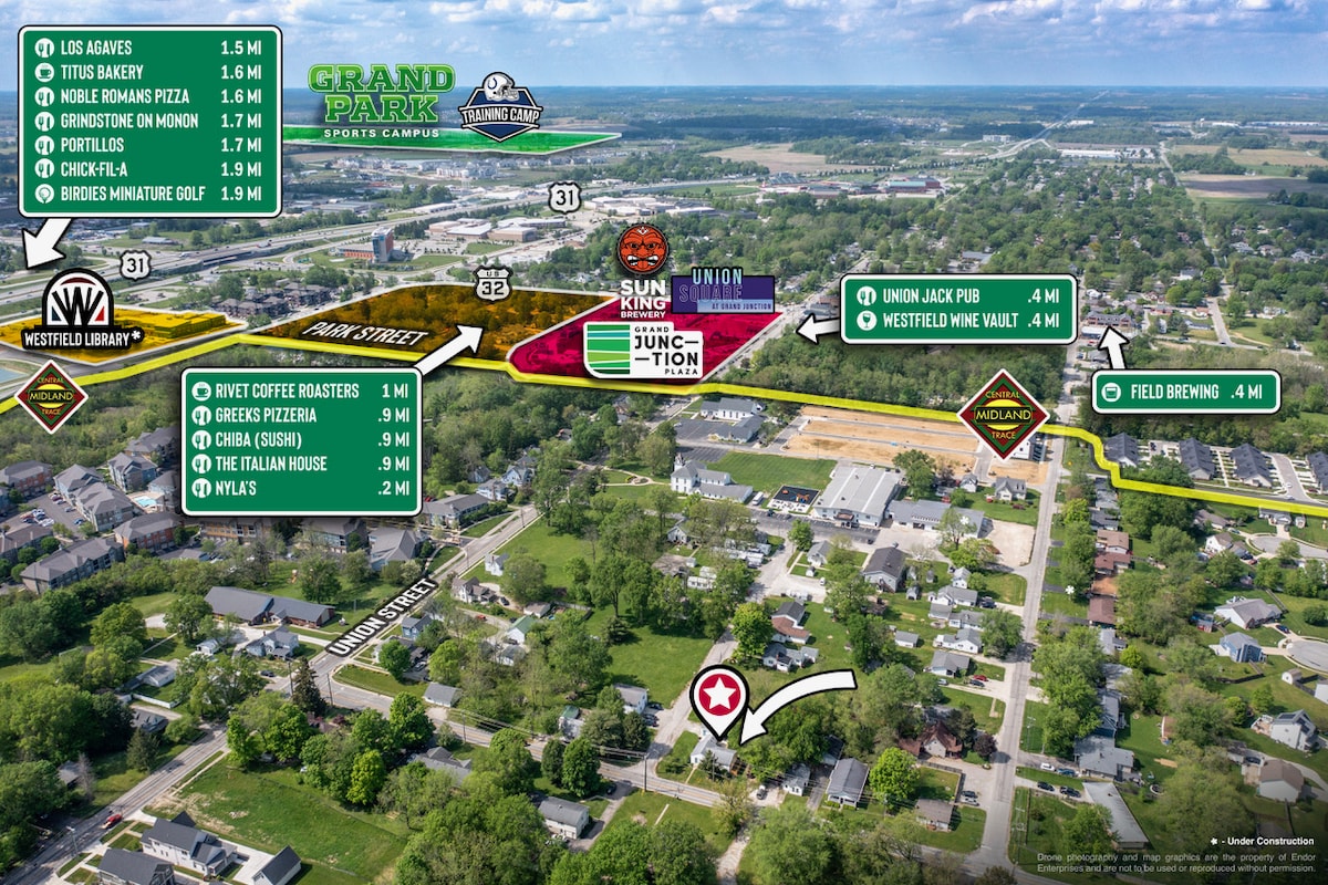 Bring family and friends to this home with lots of space for fun and games within 2 miles of Grand Park and the shopping, restaurants, breweries, wineries, distilleries and outdoor festivities at Grand Junction Plaza in downtown Westfield. Looking for a place to enjoy all the activity, but also a peaceful place to get away, look no further. This home is nestled on a wooded acre with outdoor spaces, hot tub, fire pit, game room and indoor amenities to make for a special stay.