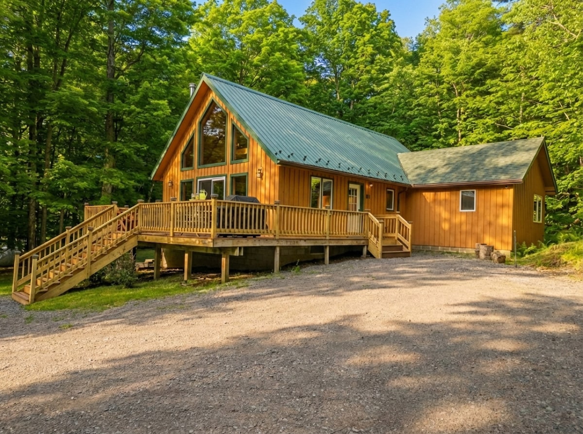 Welcome to River Bend, a secluded Adirondack cabin surrounded by forest and flowing creek water. Relax in the hot tub, unwind by the fireplace, and fall asleep to the sound of Beecher Creek. Just miles from Great Sacandaga Lake, the cabin sits in the foothills of the Adirondacks. Enjoy the covered porch, peaceful pines, and all four seasons from the relaxing hot tub. Perfect for couples, families, and getaway weekends.