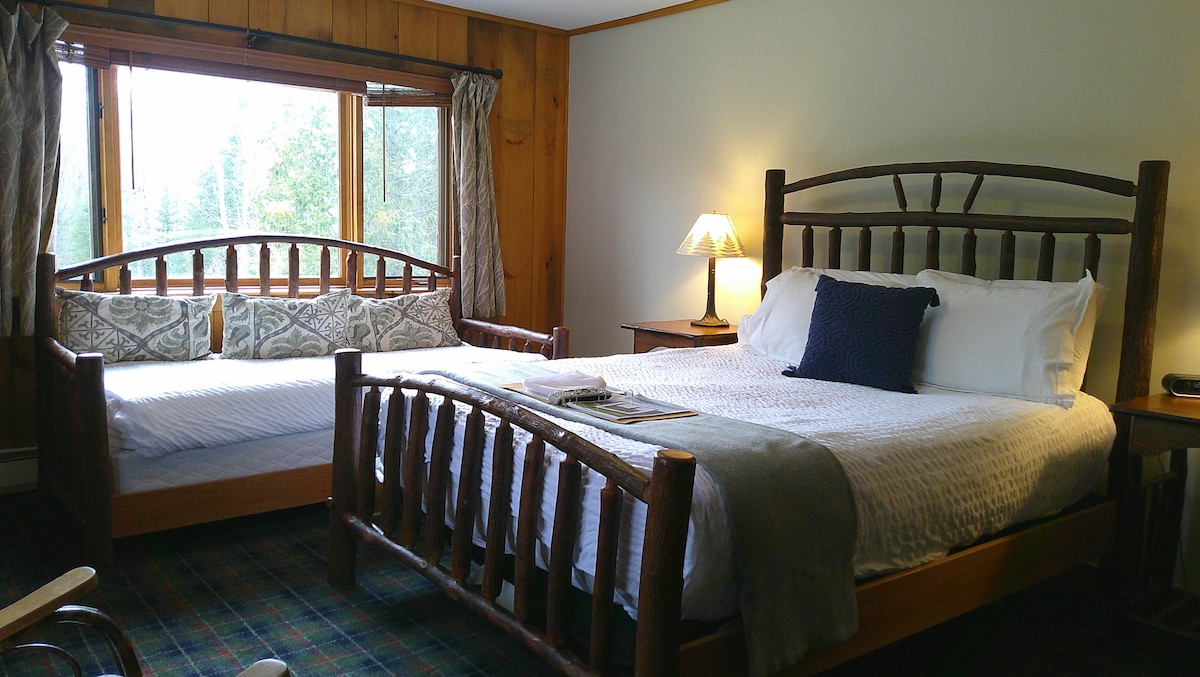 Snowmobilers Paradise! Abundant parking & on trail 5 Our pet-friendly beachside rooms sit just off our private, sandy beach on 4th lake, complete with comfortable seating for 2. This unit features: 2 queen fully adjustable beds Smart TV Shower Dining table with seating for 4 Heat and air conditioning Granite counter 2 burner cook stove Refrigerator and freezer Microwave Linens, towels and hand towels Paper towels and toilet paper Washcloths Keurig coffee maker Shampoo & Conditioner
