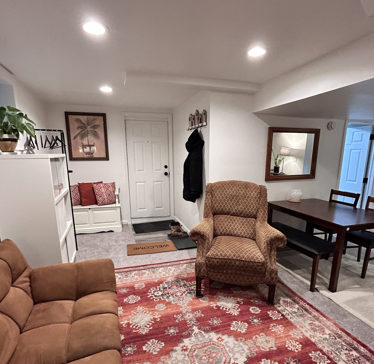 Kick back, relax in this calm and cozy 400 sqft space. Located in a peaceful neighborhood within 5 minutes of restaurants, grocery stores, parks, pools, attractions, and main . Laundromat, convenience store across the main street. Minutes from Winton woods Park. No smoking allowed. THIS SUITE IS ABOVE OUR DETACHED GARAGE! so you may hear it sometimes, usually not too often. Water heater is a small apartment-size unit but it doesn't take long to reheat. Please only book if you are okay with this.