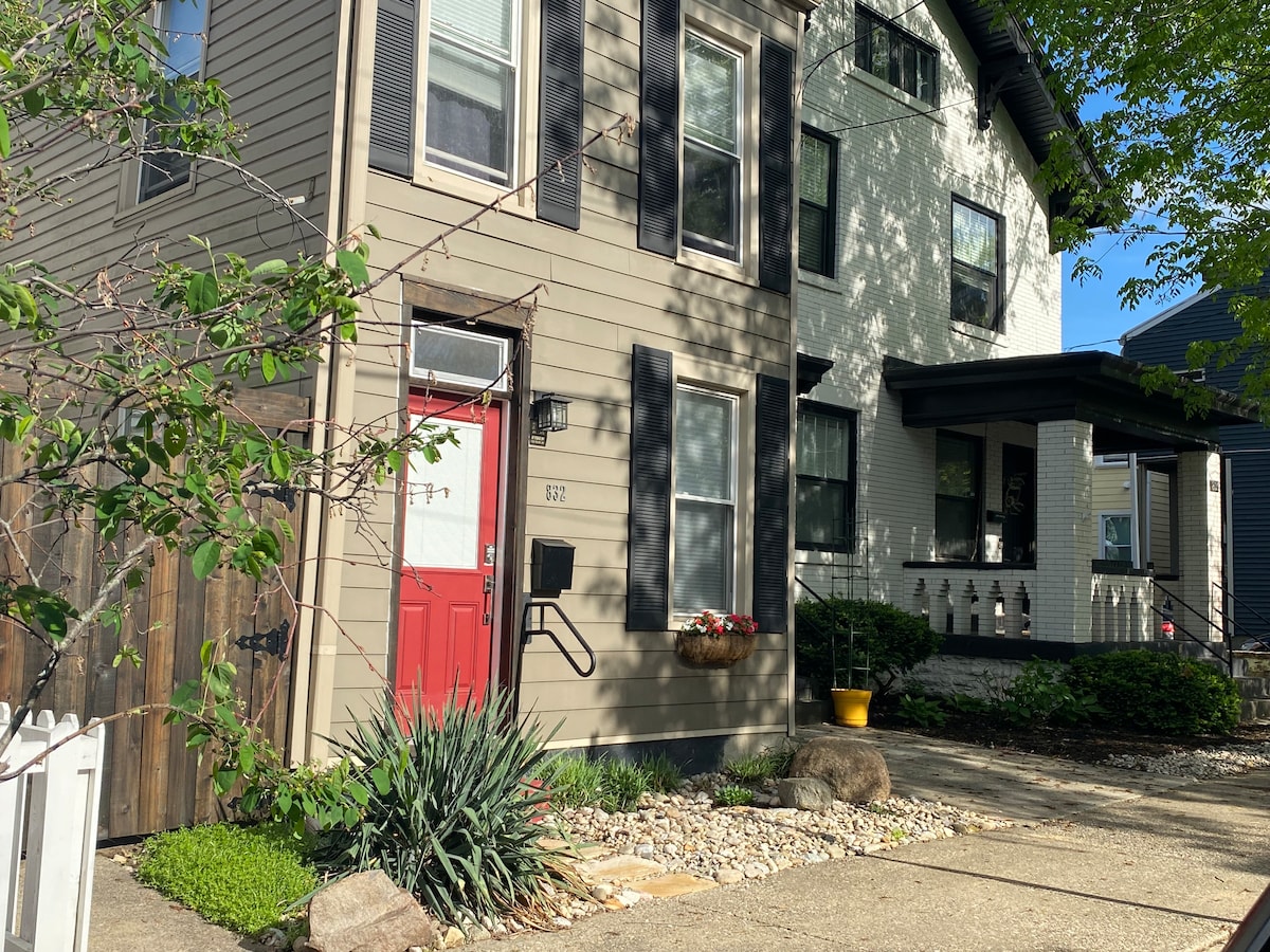 Highly reviewed private garden retreat in trendy Mt. Adams. Peaceful garden views, private patio, and keyless entry. Free continental breakfast incl. croissants, juice, cheese, yogurt, fruit, coffee, snacks, plus beer & champagne. Chic suite with queen bed, sofa bed, kitchenette, spa-style rain shower, robes & slippers. 58” TV, Netflix, Wi-Fi, washer/dryer. Walk to Art Museum, Eden Park, casino & restaurants. Free street parking.