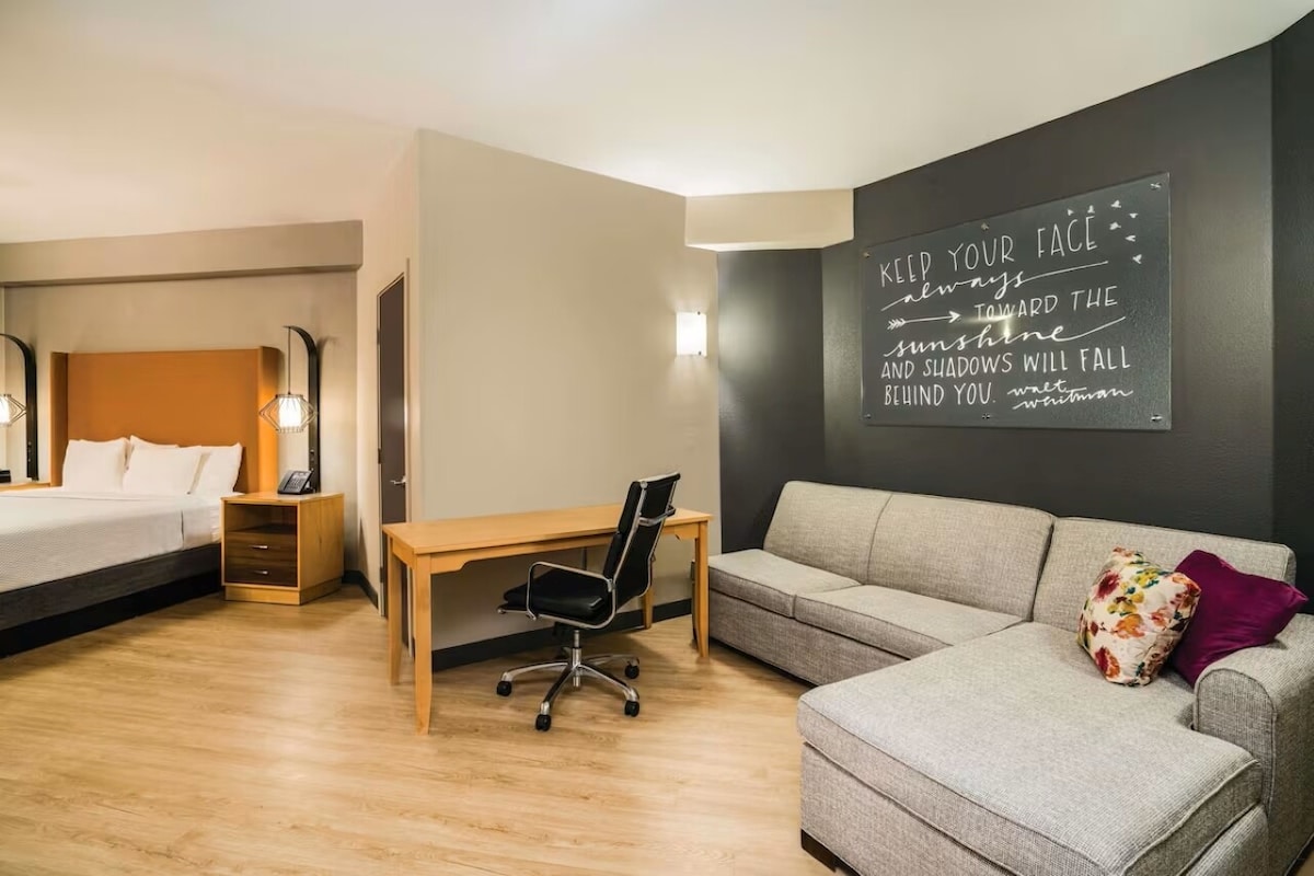 Just minutes from downtown Chattanooga, La Quinta Inn & Suites Chattanooga—Hamilton Place offers a relaxing stay close to shopping, dining, and local attractions. This one-bedroom suite includes a king bed, sofa bed, mini-fridge, microwave, coffee maker, and HDTV. Guests enjoy a complimentary Bright Side Breakfast®, outdoor pool access, and free parking.