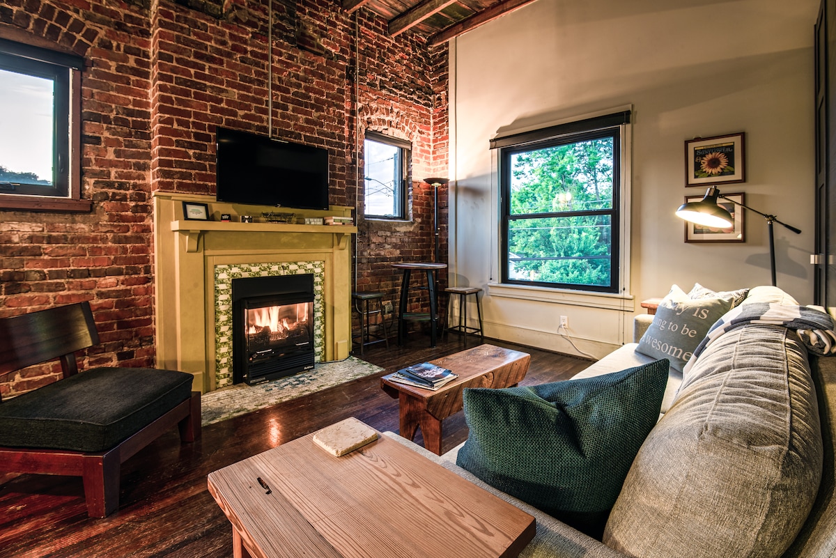 Renovated, clean, modern loft apartment in a 1920 fire station. Soaring ceilings, wood floors, brick walls, huge windows - lots of character! You'll be staying right where firemen lived 100 years ago. Easy access to everything — fantastic local restaurants, Whole Foods, downtown, the riverfront, the aquarium, parks and Stringer's Ridge are all walking distance. Our guests have said: "Coolest loft this side of the cosmos" and "I felt like I was living inside my Pinterest board."
