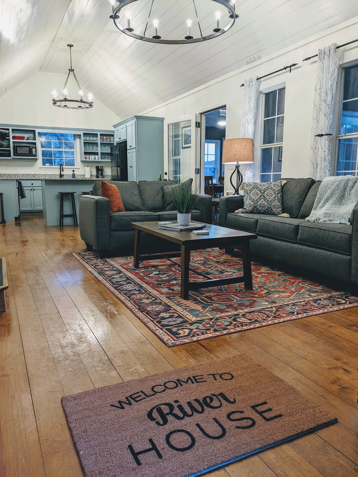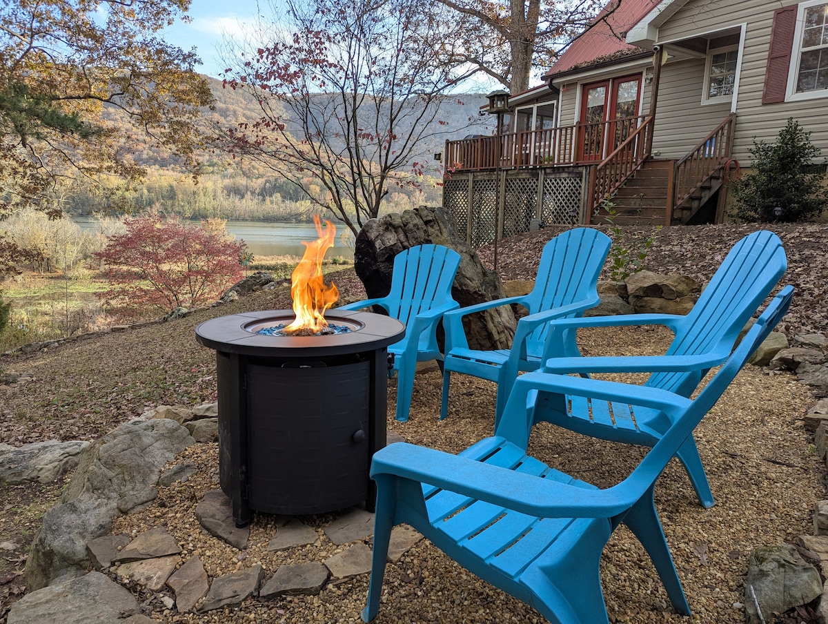 Enjoy a peaceful riverfront retreat in this 3 bedroom/2 bathroom fully renovated private residence. Nestled on the banks of the Tennessee River Gorge, this beautiful home has all you'll need to relax and is still just 8 miles from downtown Chattanooga. Gather in the great room, relax on the screened porch, grill out on the spacious deck, play yard games, and unwind under the stars at the riverside firepit. This home has everything you need for a fun and relaxing stay.