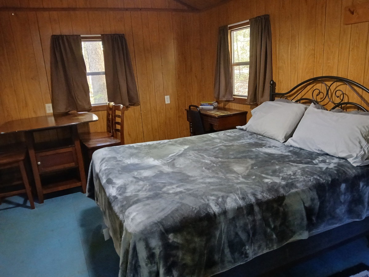 The view from this cabin is beautiful! Either sit on the living room couch or on the deck and enjoy the lovely view of the lake. It is situated on a level, wooded lot that is a great getaway. Perfect for paddle boarding, canoeing, kayaking, fishing, etc. We have a paddle boat and a flat bottom boat with a trolling motor for guests to use. In close vicinity to hiking, off-roading, paragliding, rock climbing and many other activities. Deerhead Lake in Dunlap is 55 mins from Chattanooga, TN.