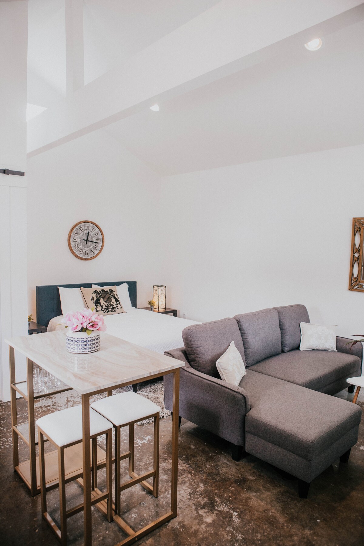 Open loft-style duplex (duplex building, Unit 4 is fully private) -1 dedicated parking spot (fits 1 vehicle) -1 bedroom with queen bed -Full kitchen with dining space -Living room with TV + Roku (streaming ready) -Desk workspace + Wi-Fi -In-unit washer & dryer ⚠️ Stairs required to access ⚠️ Entire Unit 4 is yours (no shared interior spaces) *Parking limited to 1 vehicle only*