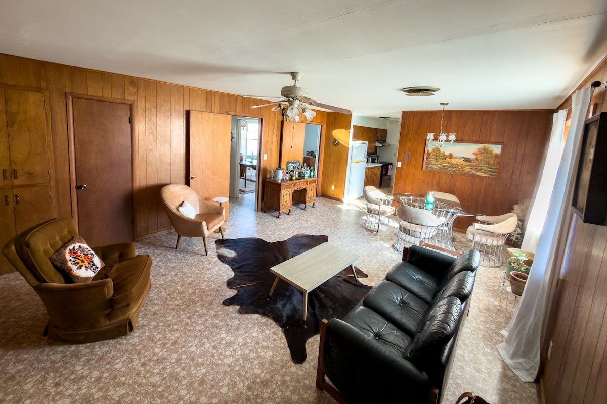 This memorable place is anything but ordinary. Great place to share with family or private group. Repurposed 1970 ish "Barn" converted to updated stylish industrial compound. Big sky, bright stars on 350 acres & 6 ponds. Enjoy the outdoors. Bunk room has 6 full size bunk beds & 2 queen beds. The new sofa also converts to a queen size bed. 2 full size bathrooms. Great lit patio with glass sliding doors, with outdoor gas grill. After the 1st two it is $75 for each additional person.