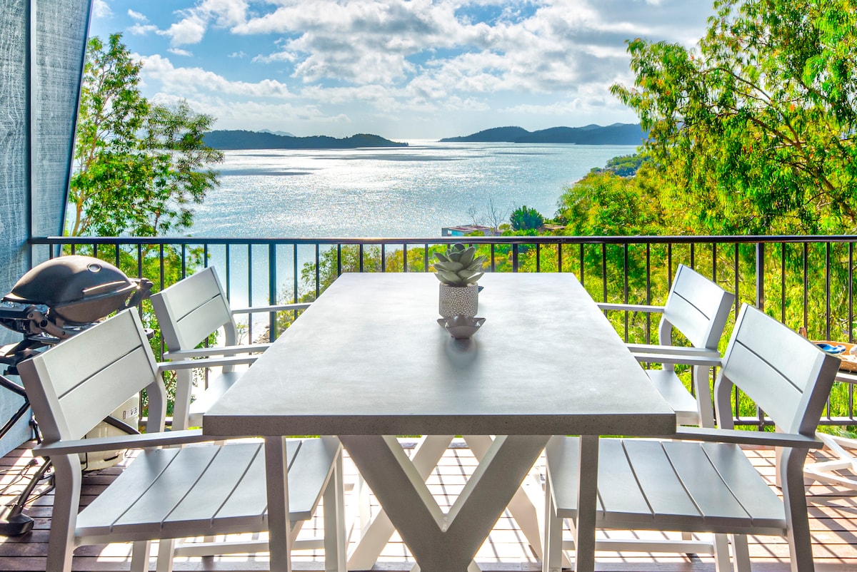 Take a break & unwind at this peaceful island retreat. Fully renovated (August 2023) modern 1 bedroom fully self contained apartment perfect for couples with views of the Whitsunday Passage. Sunsets are spectacular! Bedroom - king size bed & 2 balconies. Brand new modern kitchen & laundry. Comfortable 3 seat electric recliner lounge with tv and netflix subscription makes evenings a time to relax and unwind. BBQ, dining & deck chairs on the balcony draw you out to a tropical paradise.