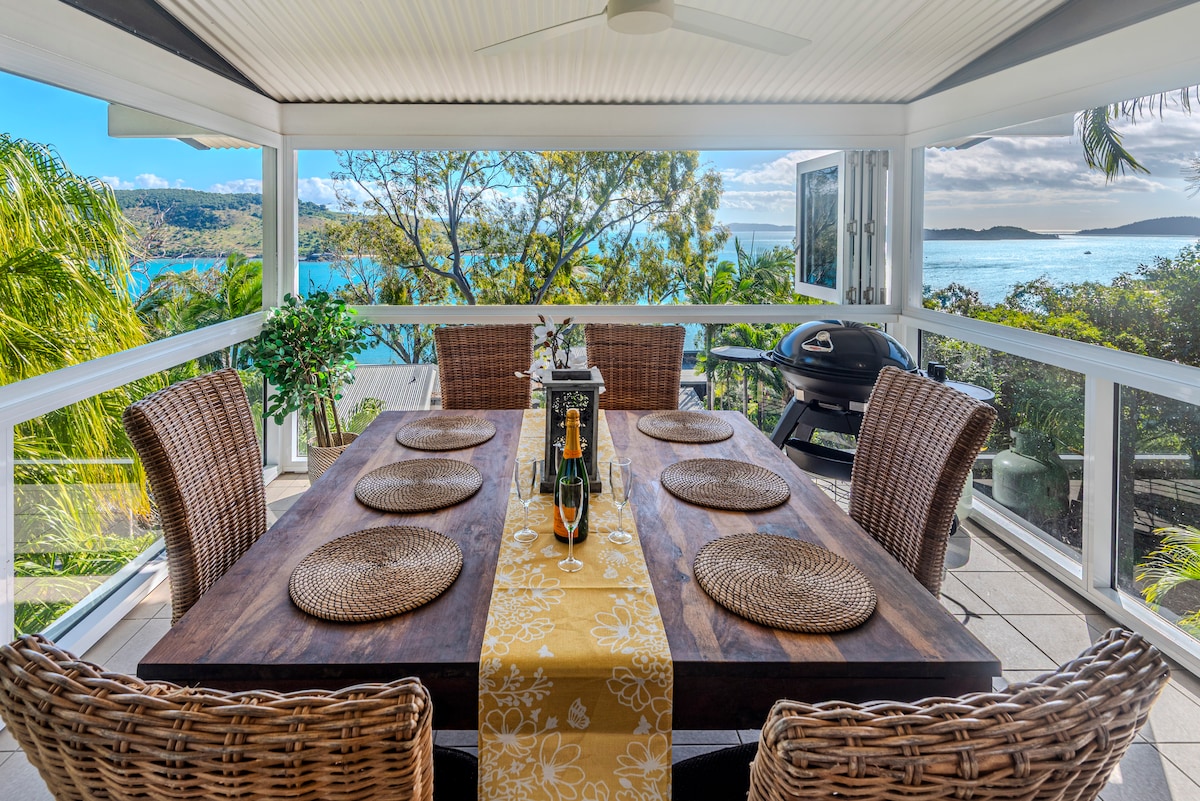 COMPASS POINT 5 - This spectacular newly furnished Villa has STUNNING views across to Dent & Plum Pudding Islands. Guest favourite - One of the most loved properties on AirBNB according to guests! It is ideally located for easy access to The Great Barrier Reef and other Whitsunday Islands. It Includes complimentary Valet transfers & Golf Buggy. Sleeps a maximum of 7 Adults & 1 Infant with various bedding configurations. One of the Islands most sought after properties!