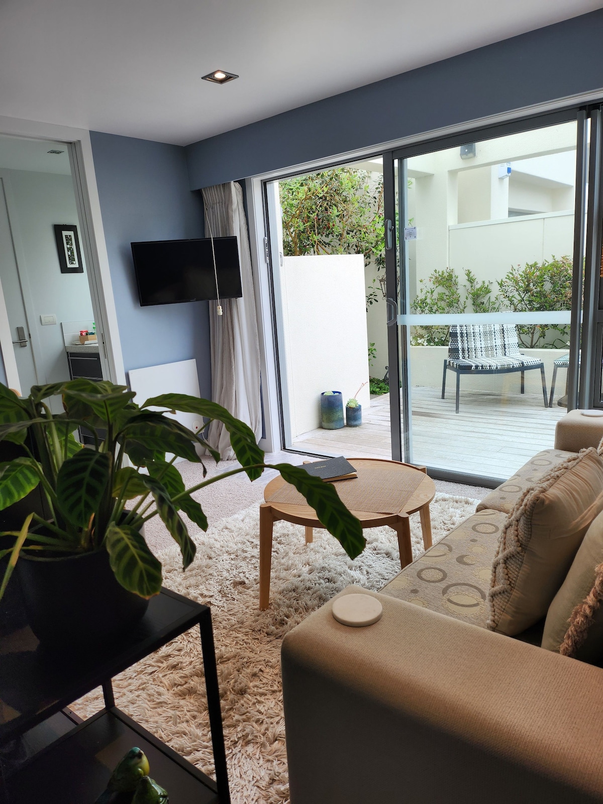 Perfectly positioned by both Waikato Stadium & Seddon Park, within walking distance to restaurants and inner city shopping, with a Countdown, Mediterranean & Asian supermarket on our block. Our comfortable and quiet 1 bedroom apartment offers all you need for a short or long stay. With a fully equipped kitchen, pull out couch for extra guests and spacious bathroom with washing machine. Our large sheltered balcony offers a private spot to relax with seating space and room for a yoga mat or two.