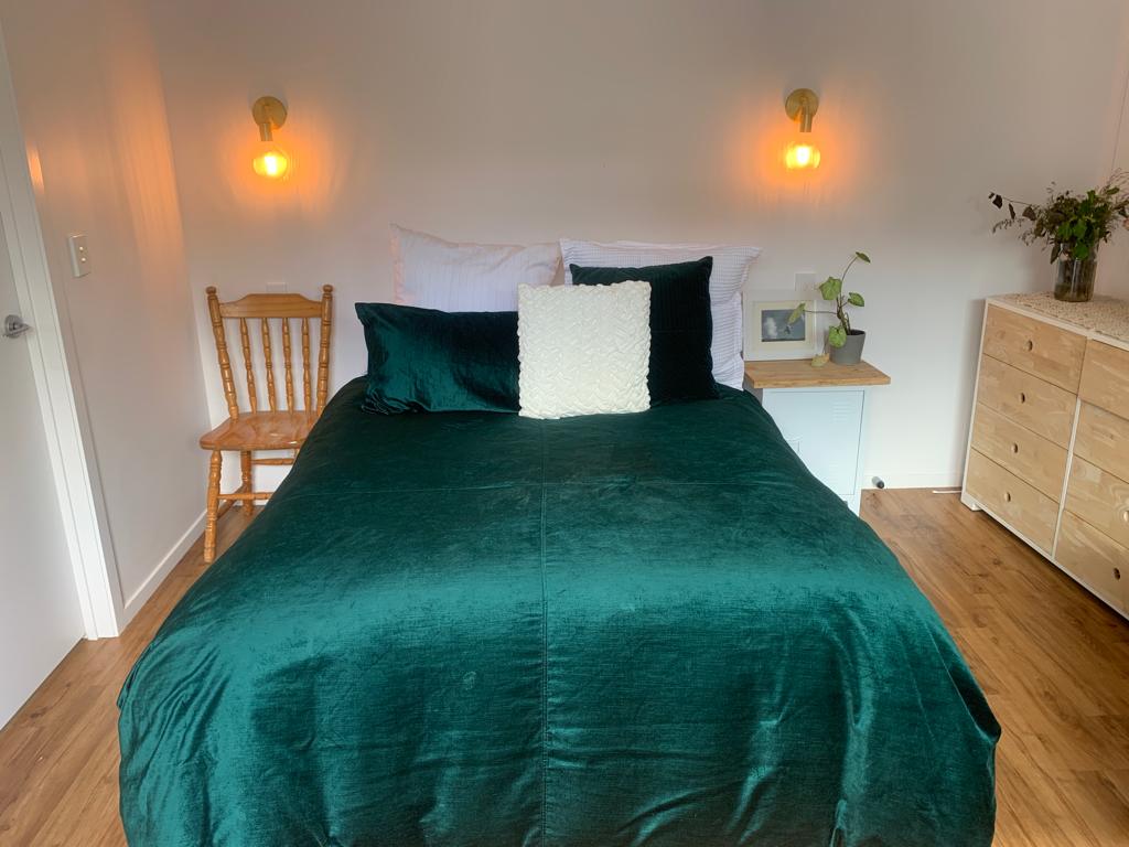Located on a quiet street close to Rototuna Village, this guest suite is perfect for singles, couples and business travellers. The room is spacious, has a queen bed, fold out couch if needed (linen for this $15 extra charge) and a new, stylish bathroom. We have a free carpark space available for you, as well as there’s free roadside car parking. Note: this room does not have cooking facilities. It is also more suitable for those with their own car, unless they would like to use the bus.