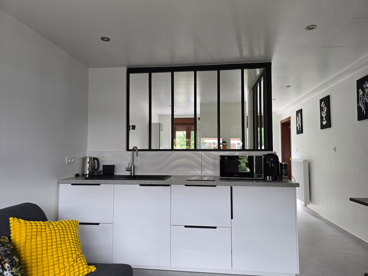 Appartement en pleine campagne, vous y trouverez : 2 chambres (2lits 160/200) 1 cuisine équipée avec frigo, four, micro onde, lave vaiselle, senseo, grille pain, bouilloire, appareil à raclette, presse agrume, mixeur. 1 salon avec canapé convertible,salle à manger 1 wc 1 sdb avec douche, evier, machine à laver Terasse et jardin avec barbecue Les draps et serviettes de bain sont à votre disposition. Livres, jeux de société et jeux pour enfant sont disponible pour passer un agréable moment.