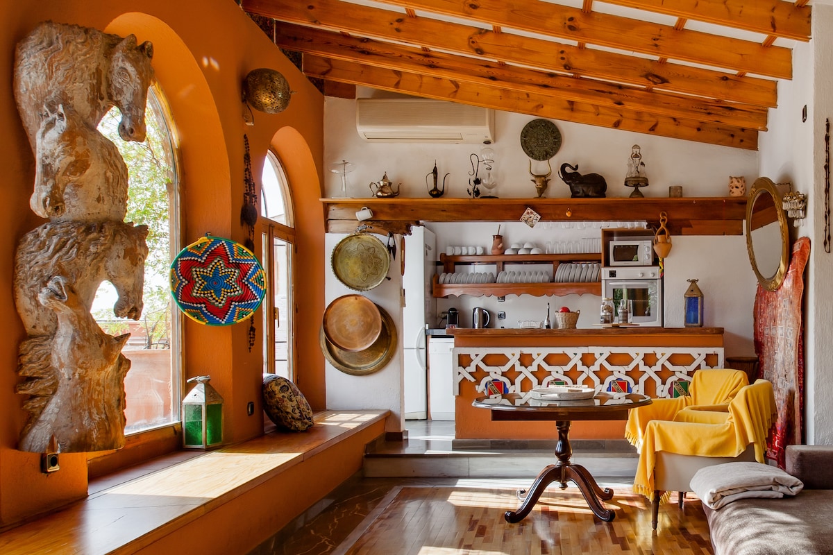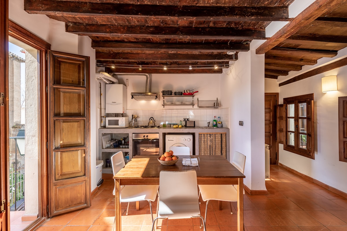 Charming flat with stunning views of the Alhambra, located in the lower Albaycin along the Darro River. Located in a 16th-century, Moorish-style building, this newly refurbished, well-furnished space is centrally located, within walking distance to all of Granada’s best sites. Sleeps 4 people, with a master bedroom (double bed), a sitting room with a convertible chair-bed and a mezzanine with a convertible chair-bed. Fully equipped kitchen. Comes with great ventilation that keeps the flat cool in the summer and a fireplace that makes it cozy for the winter. Perfect for couples, families and/or friends! Checking-in at 14h. // Check-out at 12h Buses nearby take you to the Alhambra Palace, Albaycin arab heritage quarter and Sacramonte gypsy quarter. This flat is special because it is in a 16 century house ,|the entrance is a typical "patio" or "corrala"and the stony cobbled street by the river Darro .It doesn;t stop it to be less than five minutes from an important central square Plaza Nueva.2 minutes old town , cathedral and arab shopping typical "zoco "streets