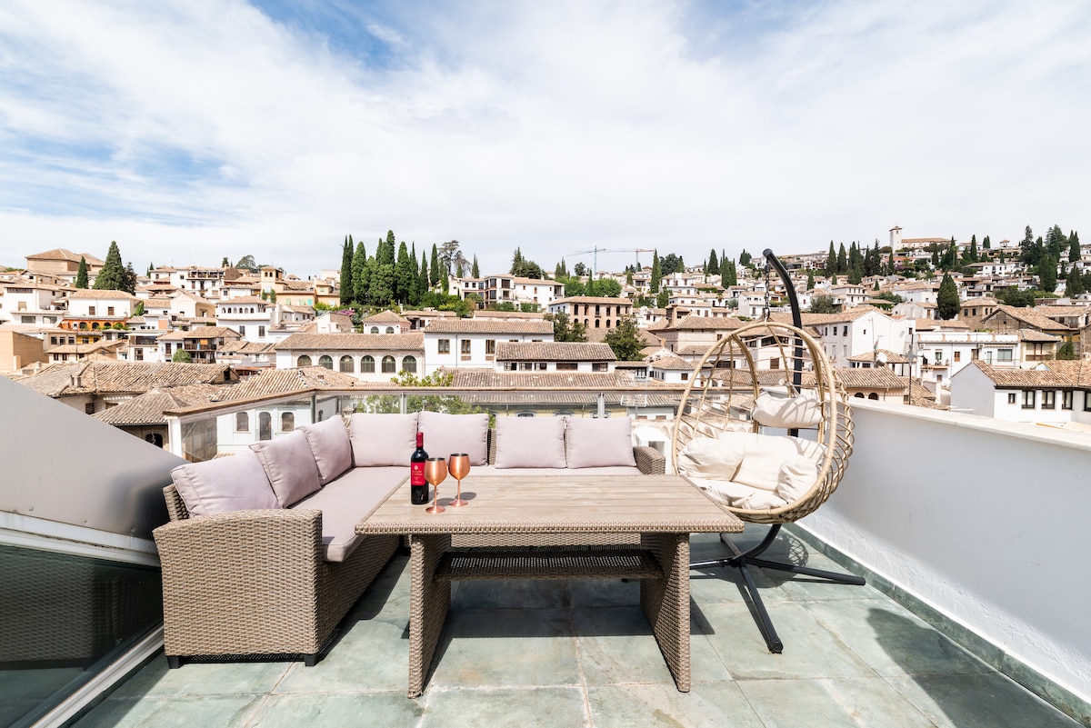 Penthouse de calidad excepcional, de 250 m2, con 3 dormitorios, 3 baños, 2 salones, 4 terrazas y una piscina privada. El apartamento tiene vistas a la Alhambra, a la Catedral y al Albaicin. Cocina muy completa, comedor para 10 personas. Especializados en ACTIVIDADES AL AIRE LIBRE.