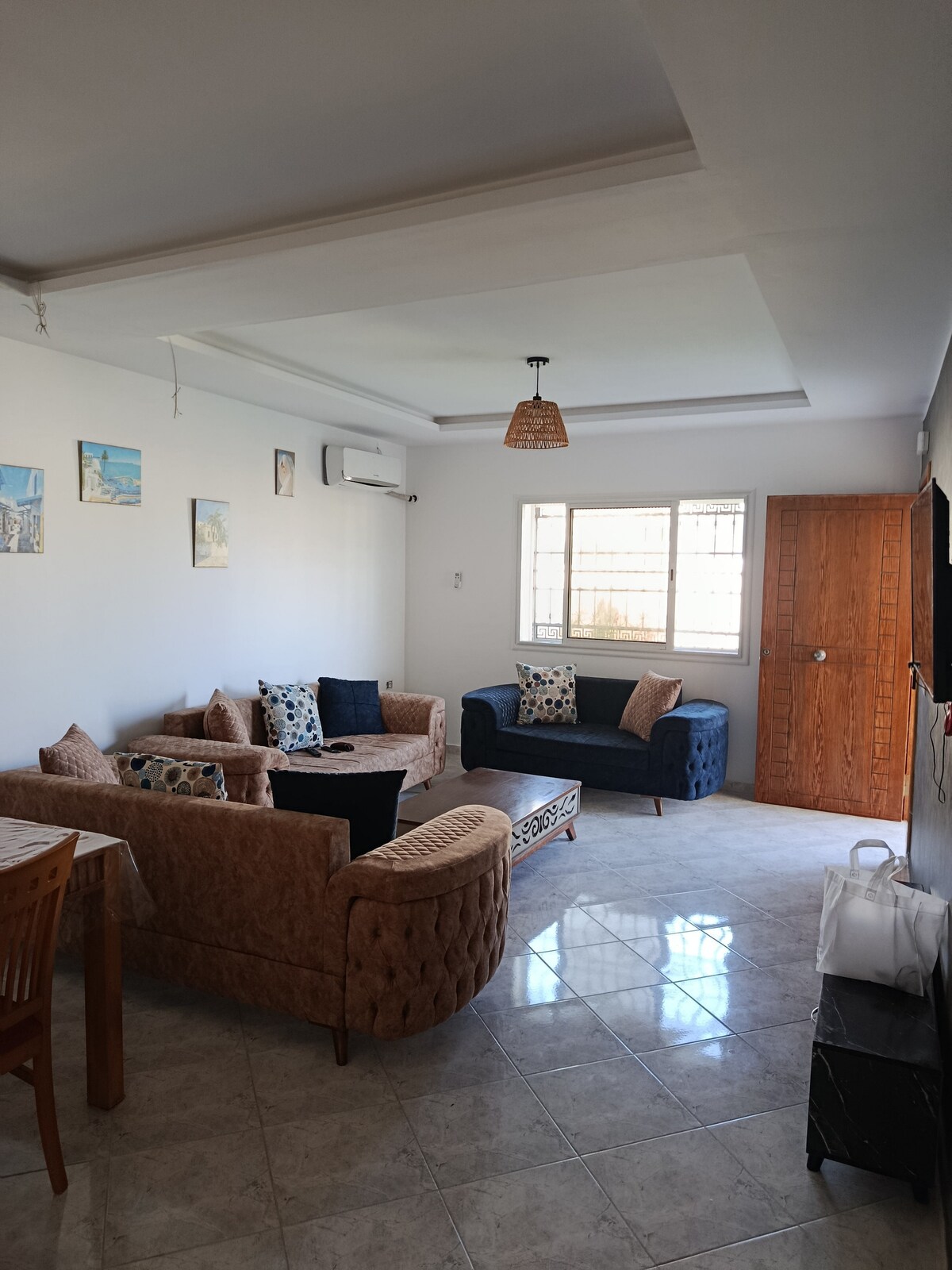 Etage villa neuve de S+3 dont une suite parentale totalement meublé (frigidaire, machine a laver, climatiseur, cuisine équipée, internet,...) a 3min en voiture et 12min a pied de la plage et kornich Dar Alouch dans un endroit très calme . A quelques minutes en voiture des autre plages de la région (Hammem ghzez, haouaria, kelibia) Vue agréable donnant sur la montagne de Haouaria et la mer avec une grande véranda devant. Pourrait accueillir jusqu'à 6 personnes (+ matelas sont disponibles) .