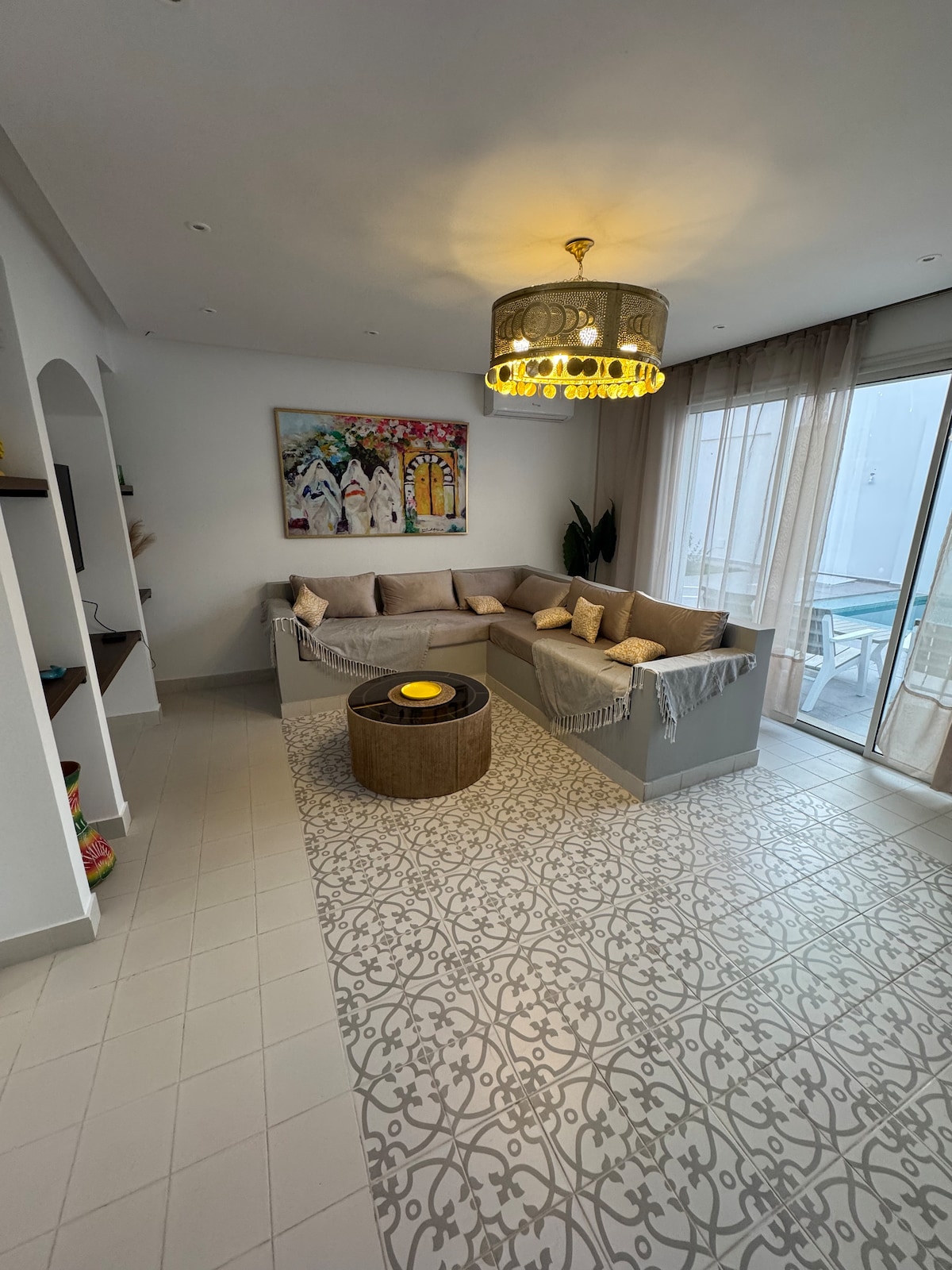 Maison capri ,style méditerranéen moderne ,Rez de chaussée avec jardin,doté d’un rooftop avec vue panoramique 🌟Maisons les jasmins s+2 capri et sorento deux maisons côte à côte Rez de chaussée à seulement une minute à pied de la plage hammam jabli à hammam ghezez Et un rooftop commun doté d’une vue panoramique sur la côte de hammam ghezez avec deux coins méditerranéennes jaune et vert pour les deux maisons