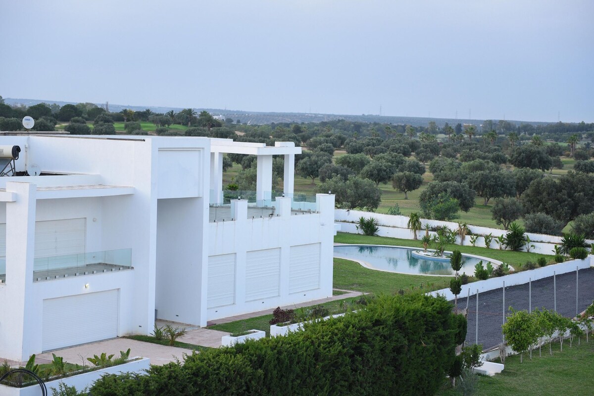 Enjoy this beautiful home surrounded by greenery and breathtaking view of the Gulf of Hammamet. Property is located at the outskirts of the city, 8 km from two 18-hole golf, 45 minutes from Tunis & 8 minutes from the beach. This 4-bedroom villa is equipped kitchen, a large dining & living room, a 14x7m swimming pool and a spacious garden (2000 sq m). In addition, there is a guest house of three suites in two different apartments, with a kitchenette and living room, you can enjoy 7kw free charger