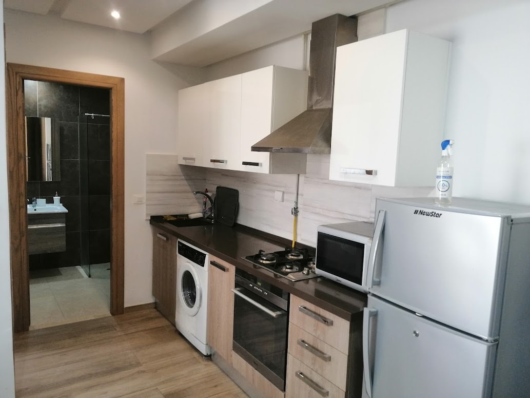 Superbe appartement très moderne de 61 m2 au 3 eme étage avec double ascenseurs d’une Luxueuse Résidence de standing située à citée el Wafa (très calme) à 900 mètres de la plage entre les deux oued (meilleure plage de hammamet), qui se compose d'une chambre à coucher, un salon et un balcon. Très lumineux, cosy et entièrement neuf. Equipée avec du matériel de haut de gamme, climatisation, chauffage… Nb : Cet appartement est destiné que pour les familles / couples mariés / voyage en solo