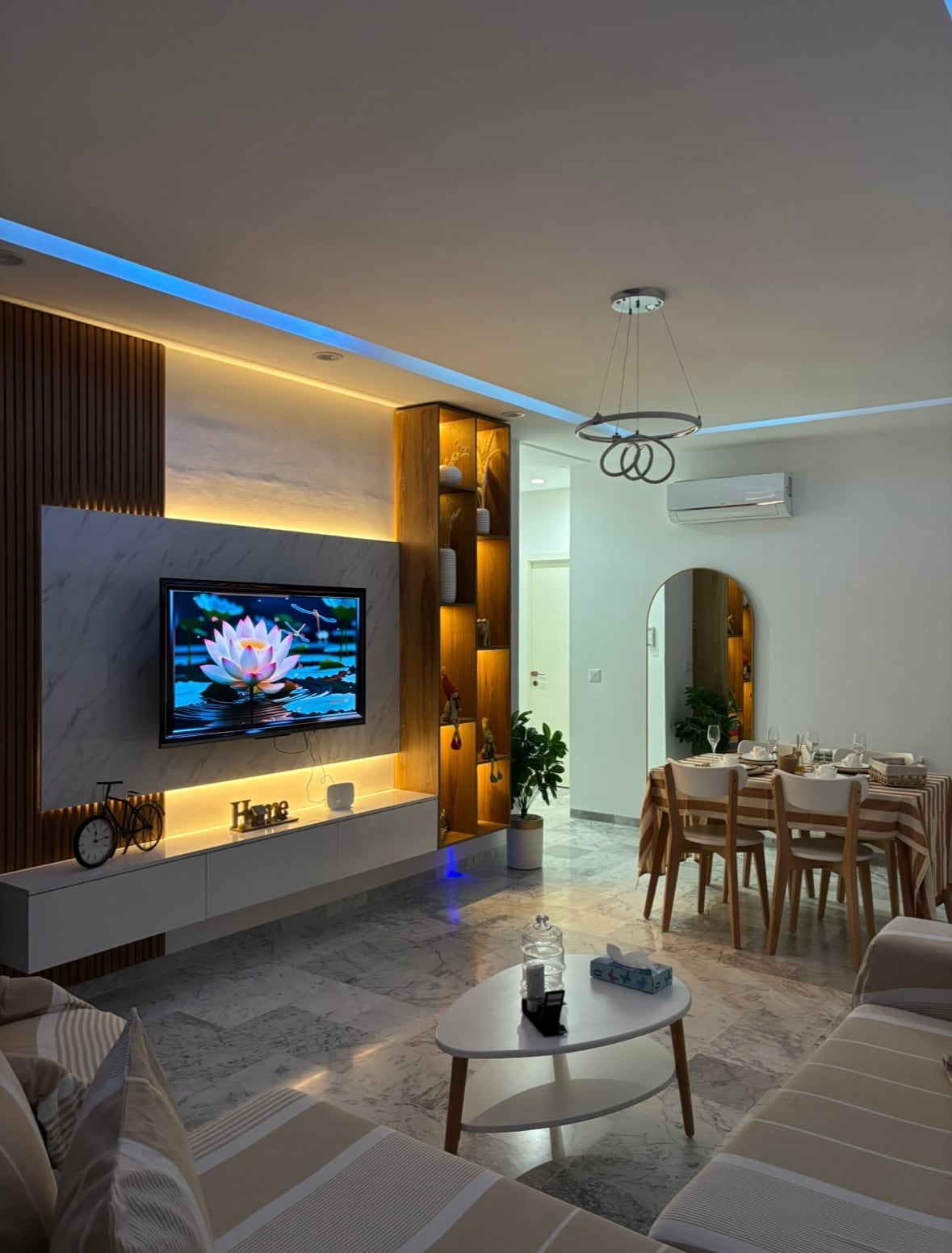 Appartement S+1 de haut standing, lumineux, à seulement 10 minutes à pied des hôtels Palm Beach et La Badira. Il se compose d’un grand salon, d’une chambre à coucher, d’une cuisine entièrement équipée, ainsi que d'une salle de bain bien aménagée. L'appartement dispose de la climatisation dans chaque pièce et d'un système de chauffage central pour un confort optimal toute l'année. Un parking sécurisé en sous-sol est également inclus.