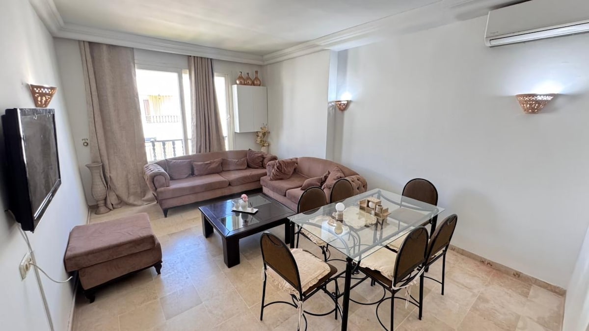 Résidence Royal en zone touristique de Hammamet à proximité de toute les commodités des appartements à louer pour touristes, courte ou long durée, bien équiper avec tv, climatisation, kitchenette, service concierge , 1 chambre + salon pour 4 personnes 2 chambres + salon pour 6 personnes disponible sur une autre annonce L’endroit et paisible, sécuriser et calme, recommander pour les couples et les familles