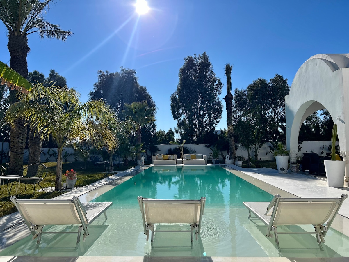 Dar Lily 宽敞的设计师别墅,带泳池,靠近海滩