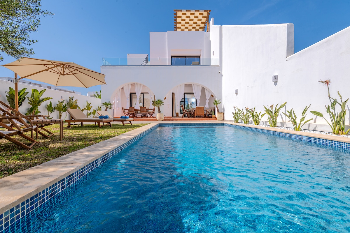 Dar Lily 宽敞的设计师别墅,带泳池,靠近海滩
