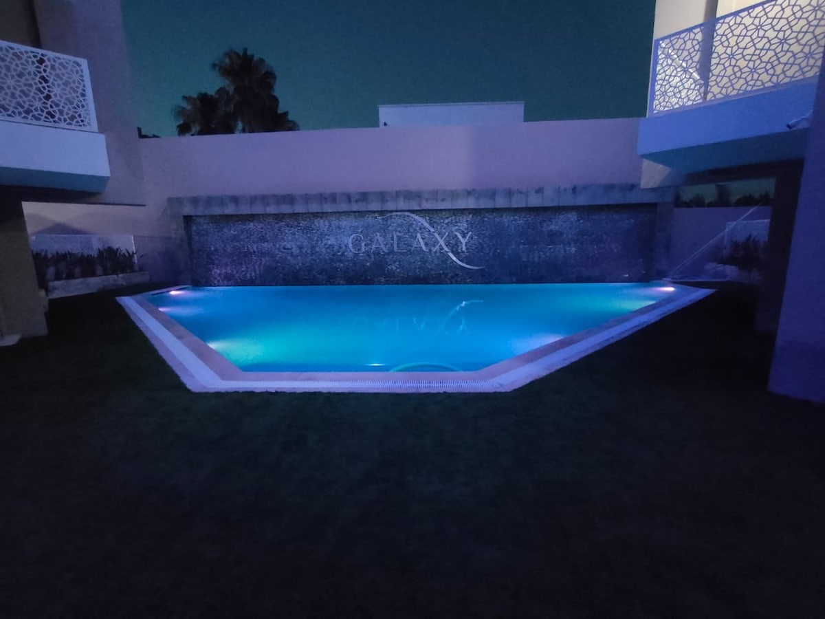 Profitez d'une expérience élégante dans un magnifique logement central, idéal pour vivre une expérience de détente dans un endroit paisible à Hamamamt sud située dans une toute nouvelle résidence et à distance de marche de la boîte de nuit Calypso et des meilleurs bars de plage de Hammamet. Son emplacement près d’une avenue majeure et à quelques pas du bord de mer. Notre bel appartement est entièrement équipé, dispose de la climatisation, de meubles modernes et d'une piscine partagée
