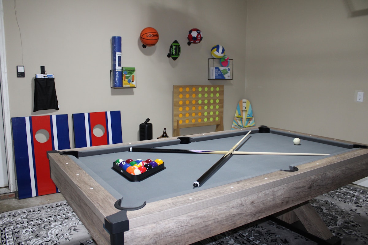 游戏室和带屏障的泳池,3张加大双人床