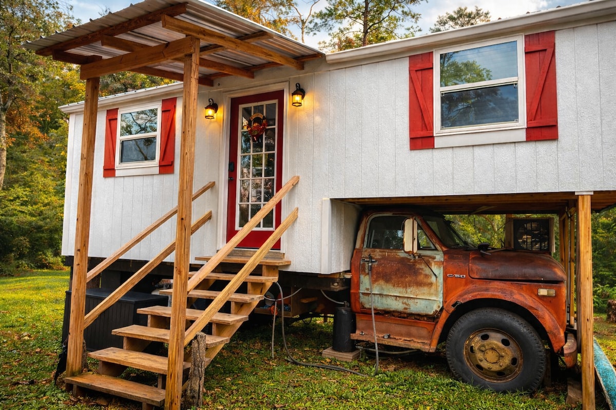 This is a one of a kind, tiny home built on a 1970 Chevrolet C50 farm truck! The truck is on a spacious private lot on the Tangipahoa River conveniently located 6 miles from Ponchatoula & 45 miles from New Orleans. The truck home is fully stocked for a perfect getaway including a kitchen, bathroom, queen bed in the bedroom, couch sleeper, AC/heat, an outside gazebo, and WIFI for remote work. Enjoy fishing, boating, bird watching, evening fires, and nature at our peaceful water front home.