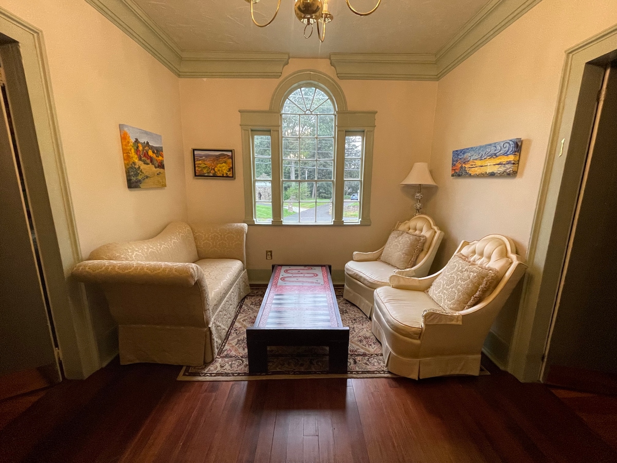 Large private bedroom and full bath in lovely Victorian home located in the Historic District of Belchertown. Step back in time in this period home decorated with antiques and enjoy the convenience of being near the Five College Area and all that it offers. There are two other rooms available at The Lacey Rose. This beautiful home was built in 1810 as a colonial and renovated into a victorian in the late 1880's.