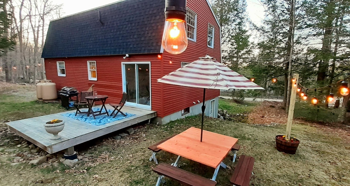 This is what happens when a realtor and an expressive-therapist make a vacation home. You get a decent property, in a good location with little things to help you de-stress, have fun and connect with friends and family. 18 minutes from downtown Lee, in the private Sherwood Forest Community with lake access, laundry, and a level-2 EV charger, this 1500 sq. ft home built in 1987 rejuvenates. We hope you will leave here a little more relaxed, recharged or maybe even a little bit happier.