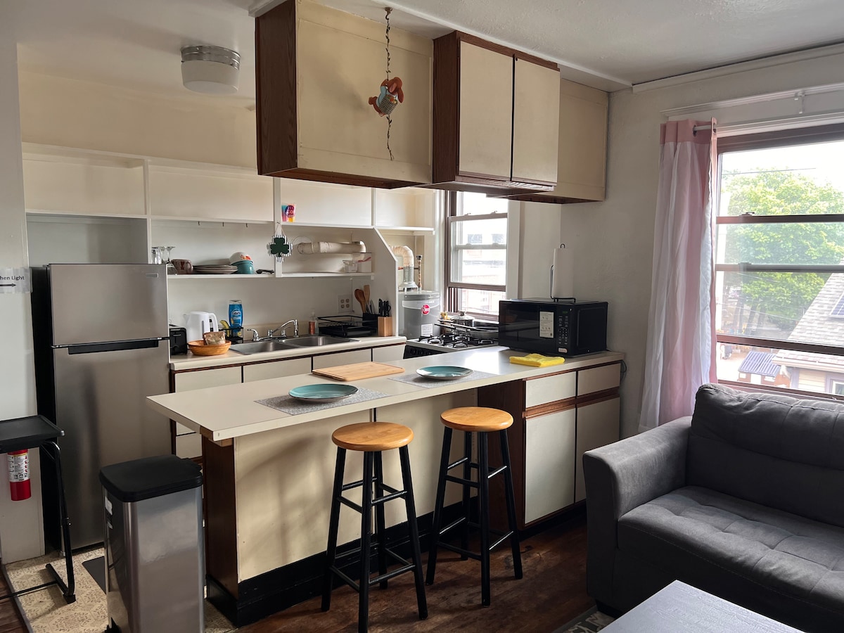 The apartment is spacious, bright, and sunny. Full of charming and quirky old details like original windows, hardwood floors, and not many right angles. Definitely not a vanilla box. The furnishings are clean and comfortable and go with the farmhouse feel. Please note that the private staircase used to access the apartment is original to the house. It is steep by contemporary standards and the tread depths are all a little wonky.