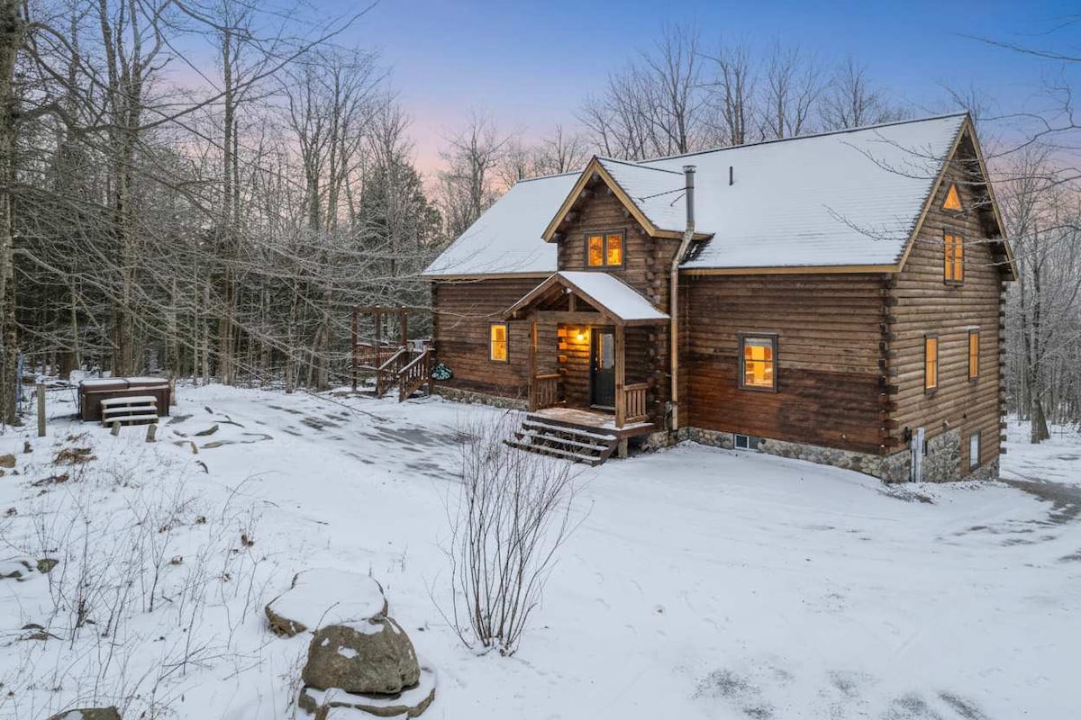 This spacious and comfortable 3- BR log cabin is the perfect refuge to gather with family and friends. Set on a private 60 acre lot in Becket, MA, the lodge is an inviting retreat; secluded and private in the woods, but close to all the Berkshires has to offer. There are 3 bedrooms, 1 of which has an attached full bath while the other 2 have attached half baths. There is another separate full bath on the main floor and additional half bath with infrared sauna lower level. The main floor feature